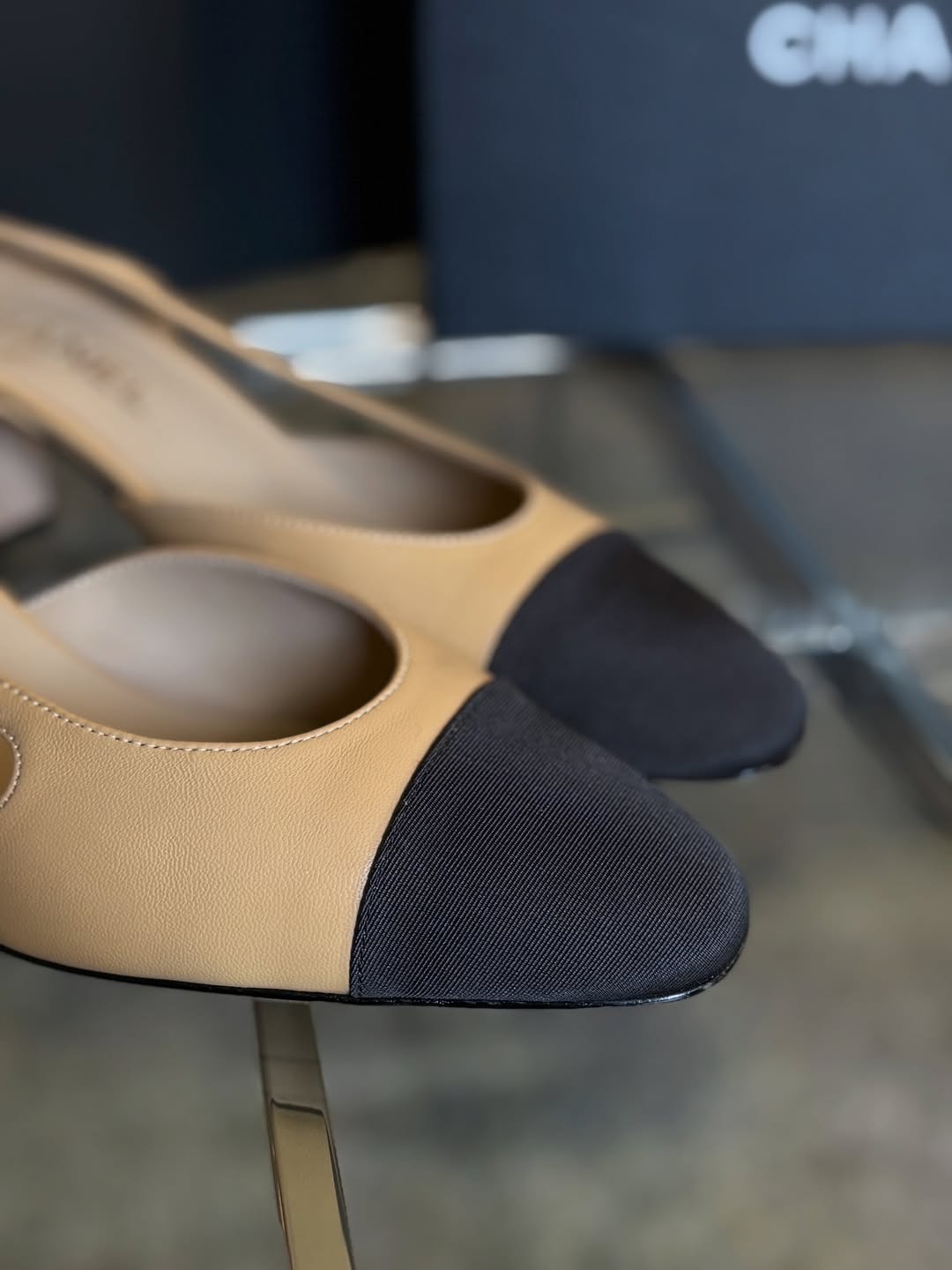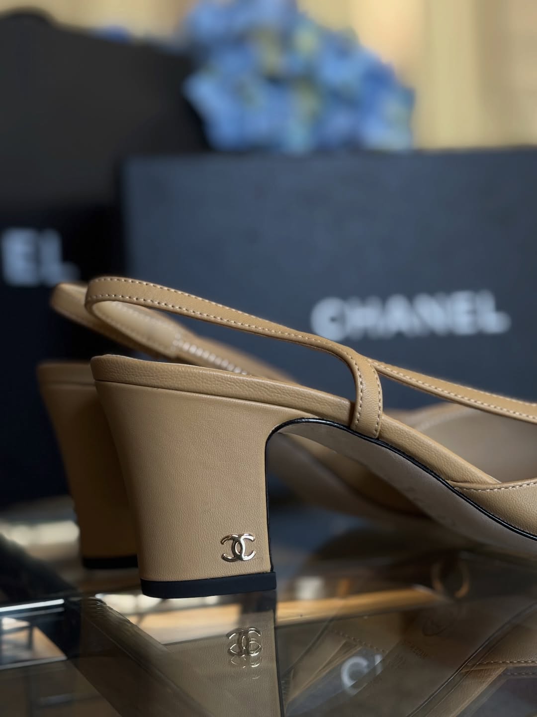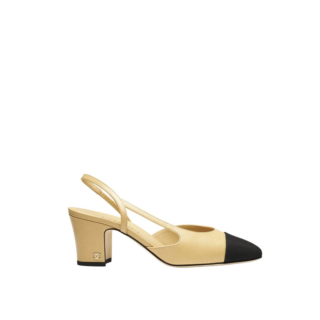/ Beige Leather Slingback Pump