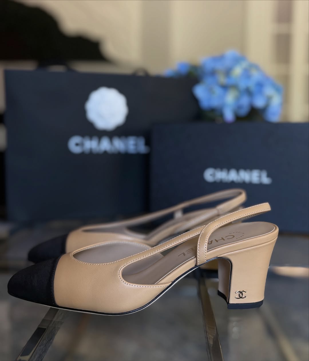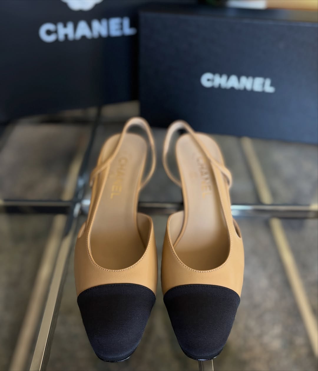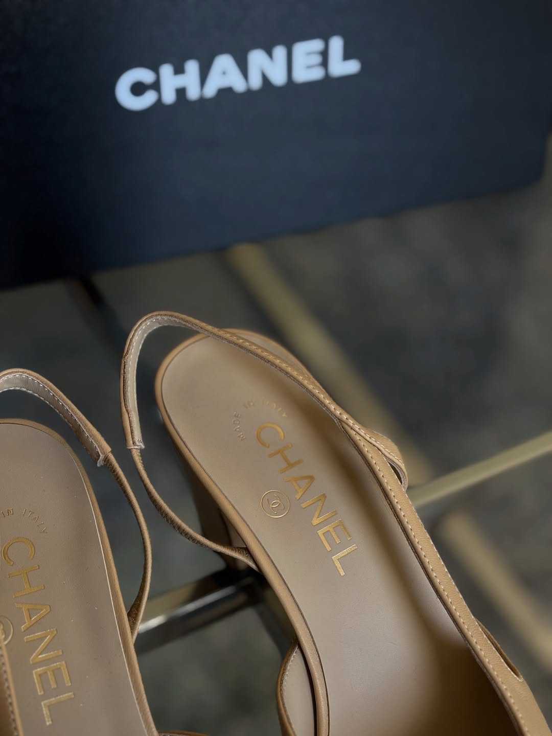 / Beige Leather Slingback Pump