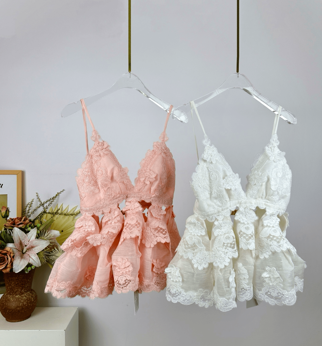 / Crush Lace Motif Tiered Top